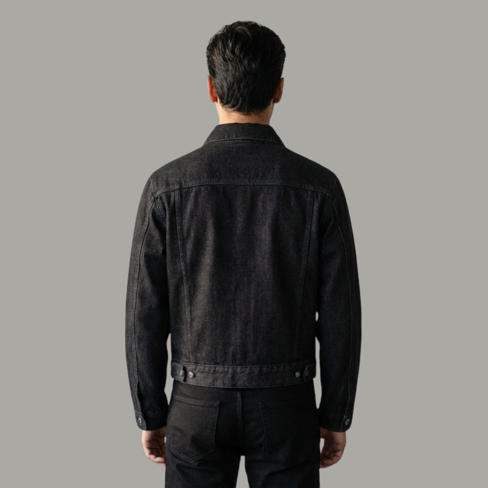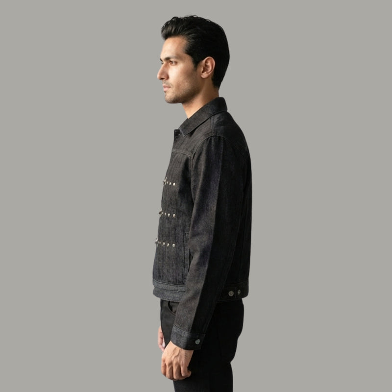 Built with wear-resistant and high colour fastness properties, the black denim holds its depth and structure over time. Inlaid pockets, a no-iron treatment, and a straight hem keep the design functional and clean. A dependable spring-to-autumn layering piece that bridges workwear grit with everyday wearability, pair with wide-leg trousers or straight-cut chinos for a balanced, put-together look.