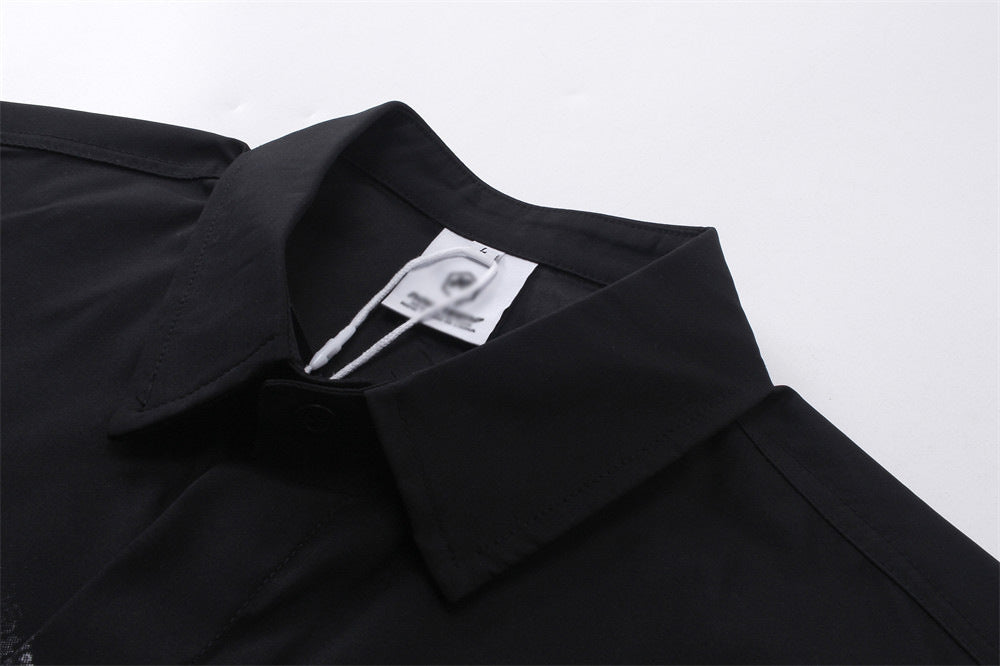 Art-forward and expressive, the Nero features a bold abstract painted print that turns a simple button-up tee into a statement piece. Built from 100% breathable polyester, it sits light on the body and keeps things cool through the warmest months. The lapel collar and loose fit create an open, relaxed neckline that drapes naturally.