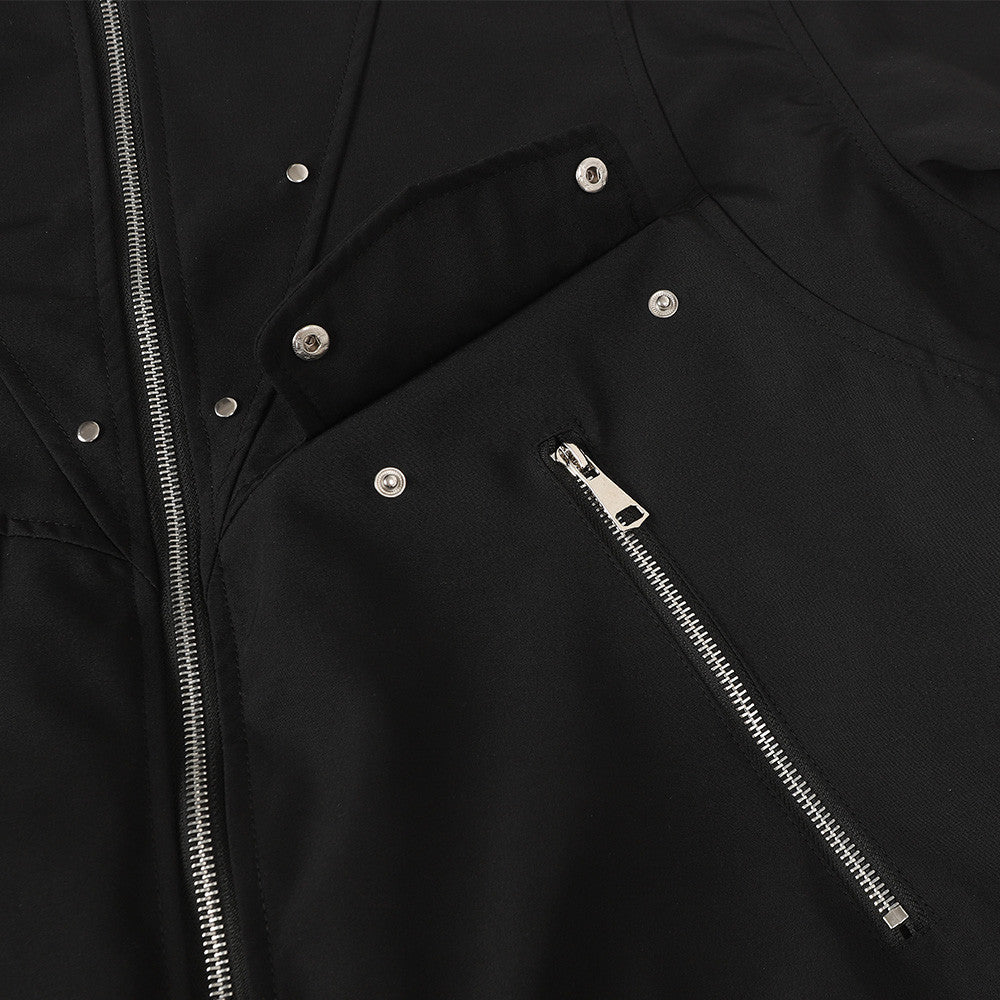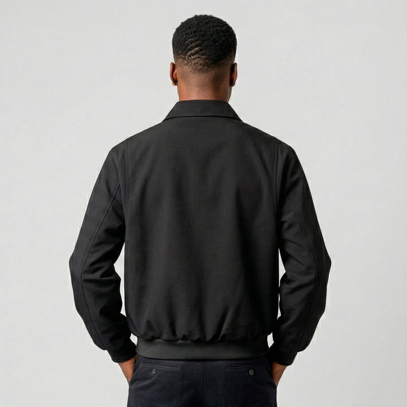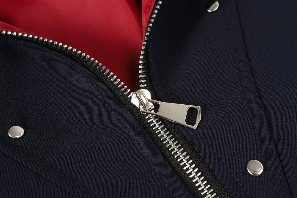 The mid-length construction offers balanced coverage for layering or standalone wear. Available in Black and Navy Blue, this jacket provides versatile outer-layer functionality.