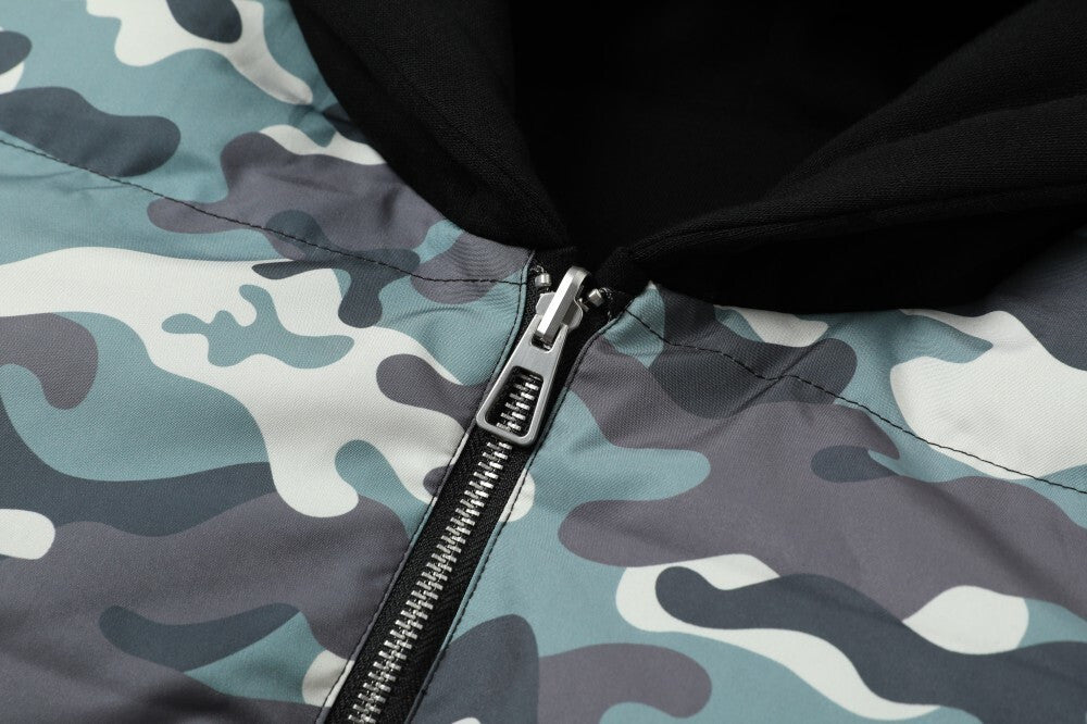 Style details: Digital printing, reversible function, hidden stitch pockets