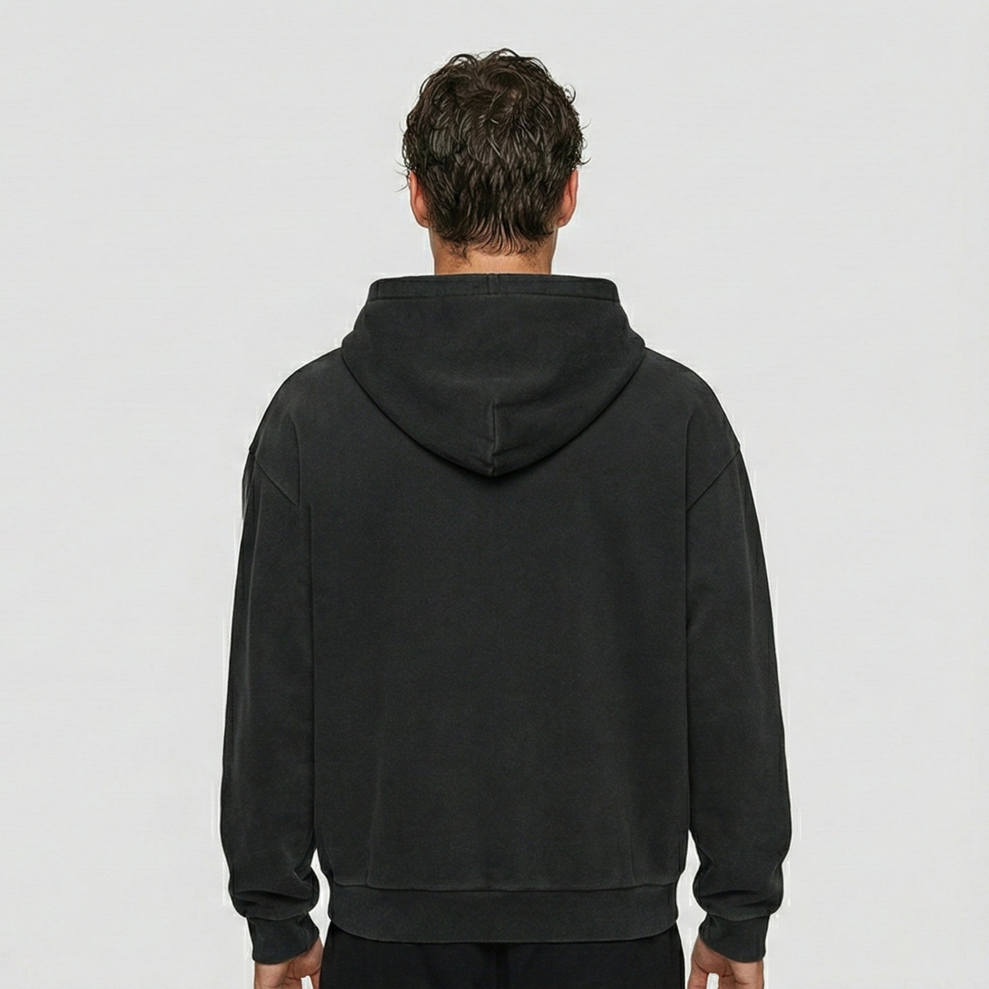 The loose fit and hooded silhouette create an approachable profile ready for casual layering.