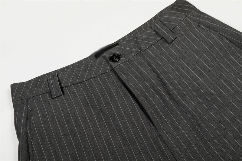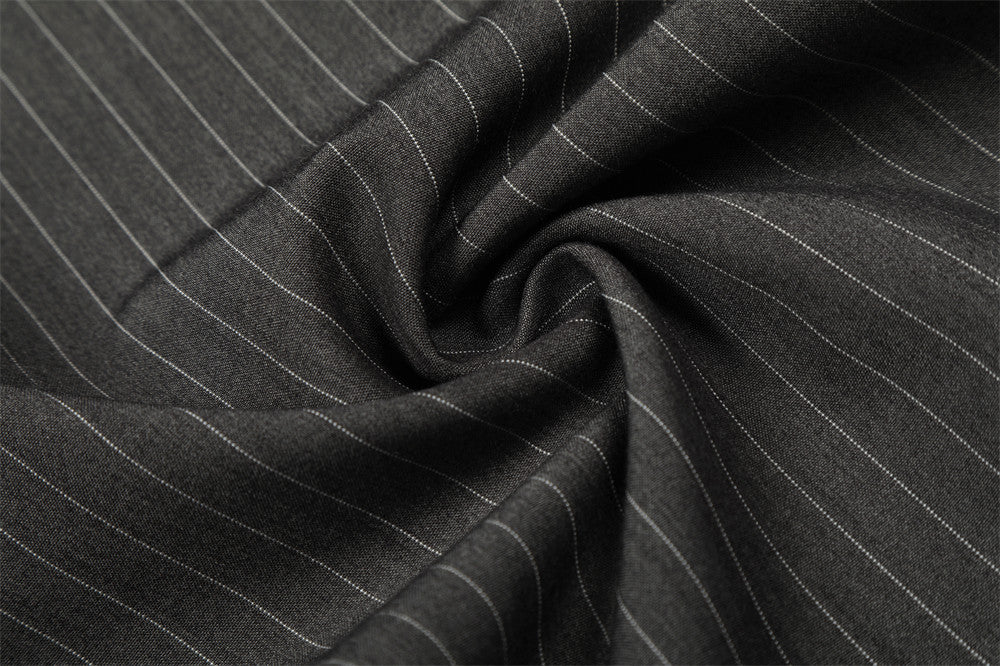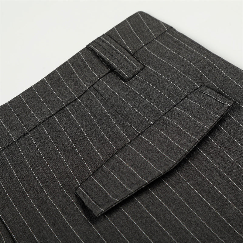 Bold pinstripe patterning and a wide, loose-leg cut give the Jameson a confident presence. Built from a polyester-blend fabric with a no-iron treatment, these trousers hold their clean, pressed appearance throughout the day without extra maintenance. The mid-waist rise and straight hem create a flattering, elongated line.