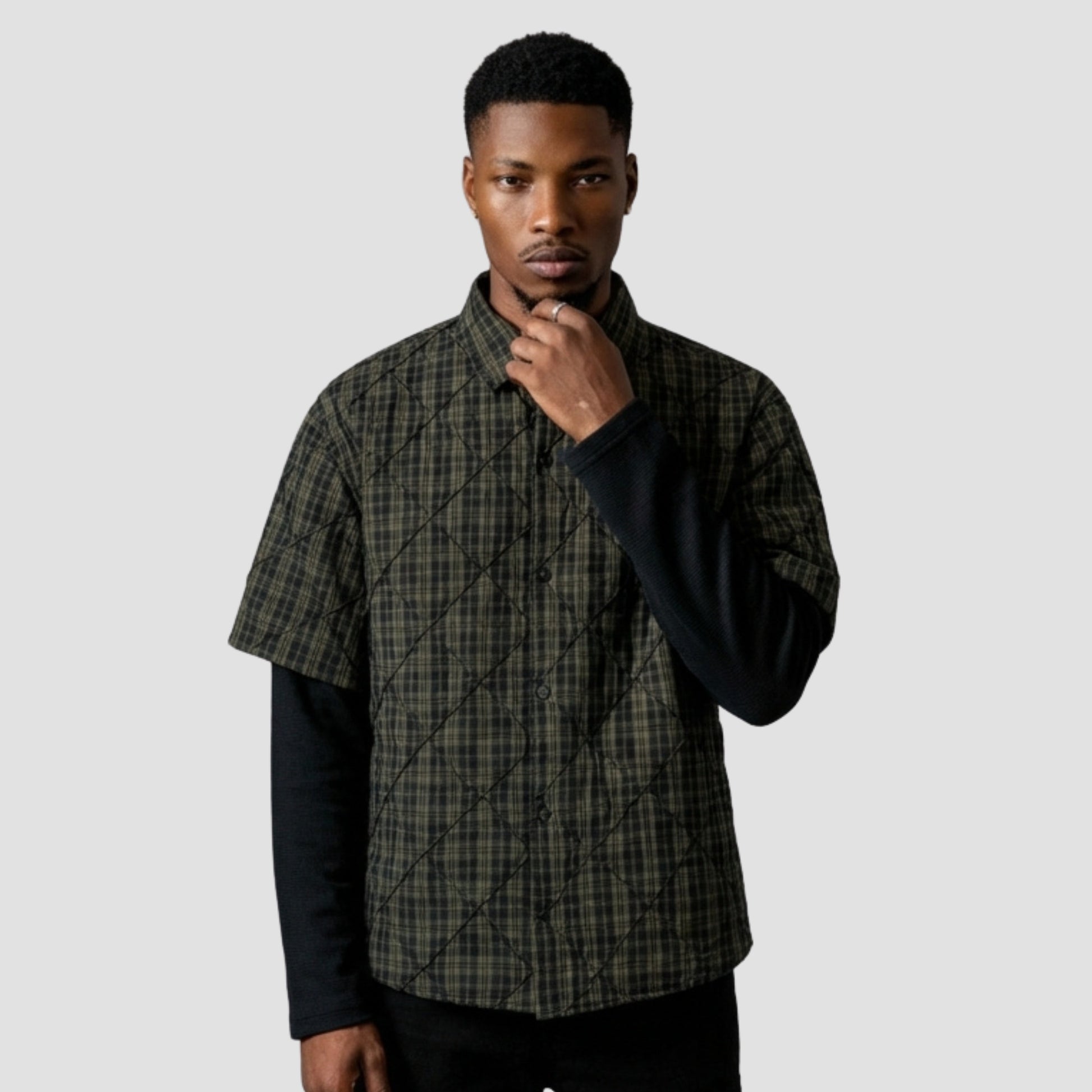 The Kane takes a classic plaid base and elevates it with diamond quilted stitching for a textured, layered effect. Crafted from 100% cotton, this button-front shirt delivers a natural, breathable feel grounded in workwear authenticity. The loose fit and lapel collar create a relaxed, oversized profile that works effortlessly across casual settings.