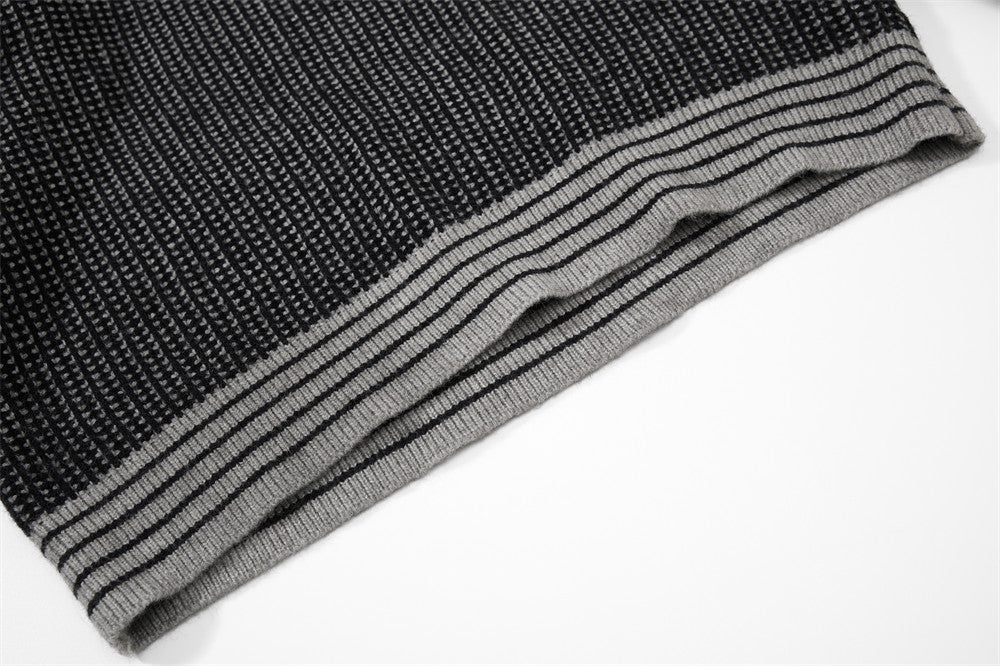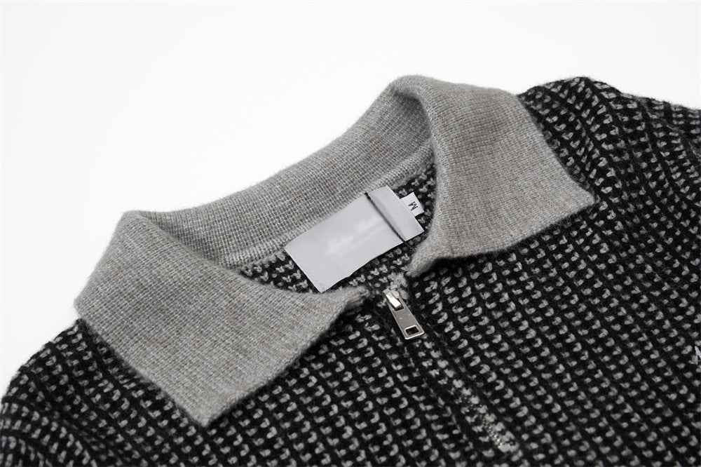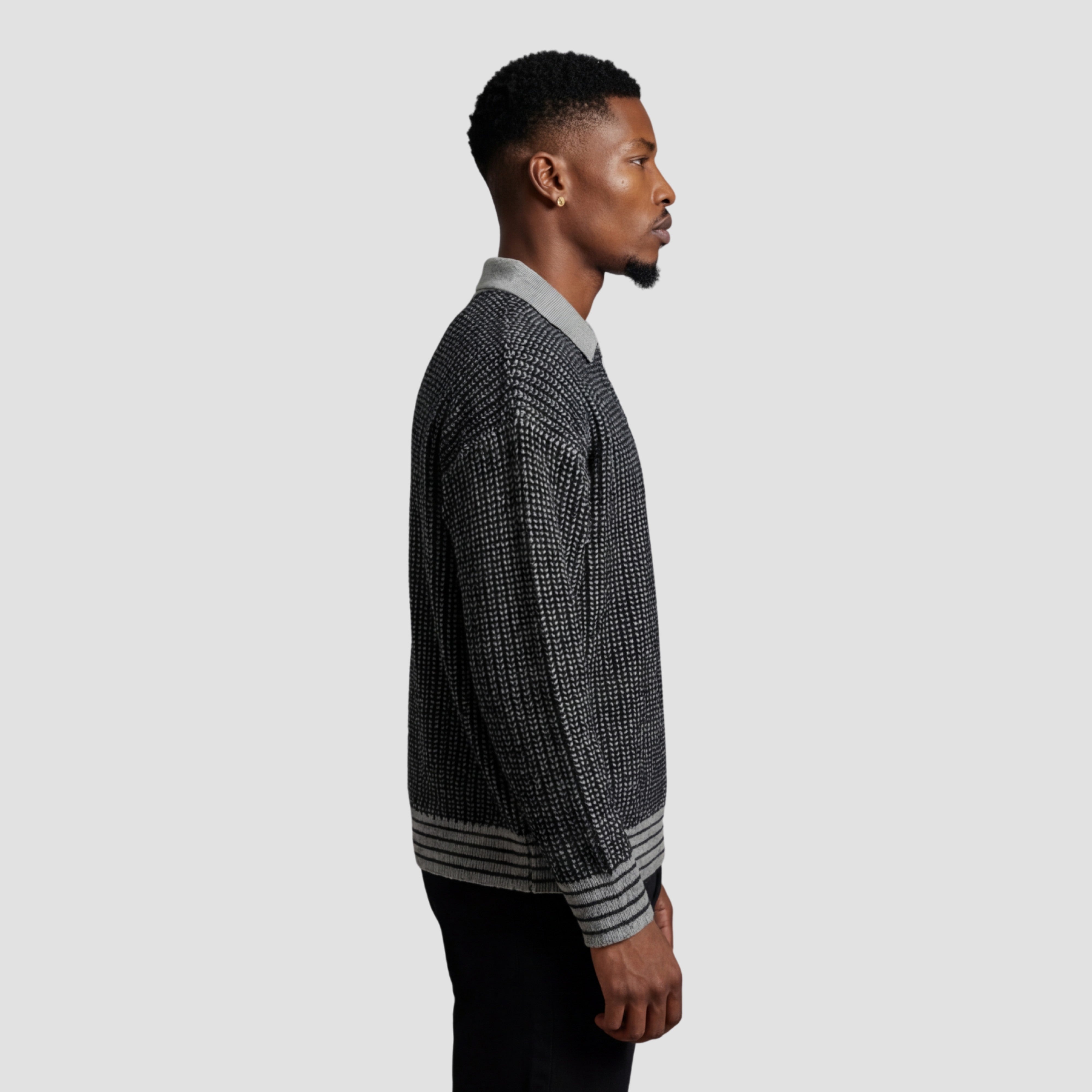 The loose fit and lapel collar create a casual yet refined profile that bridges knitwear and streetwear.