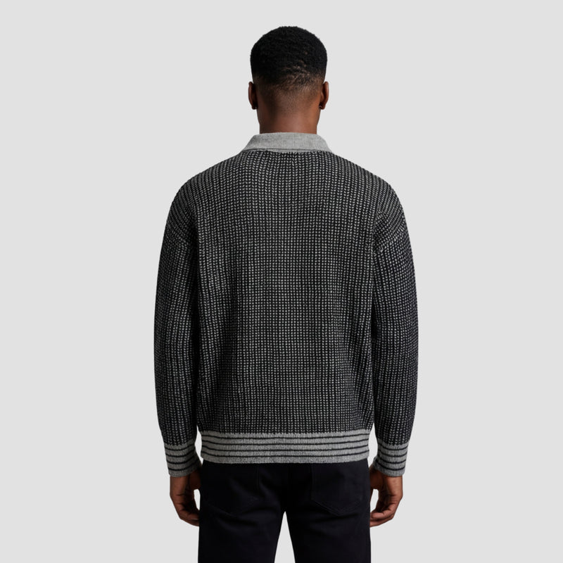 The Nathan is a jacquard-knit pullover that brings intricate patterning to a relaxed, street-influenced silhouette.