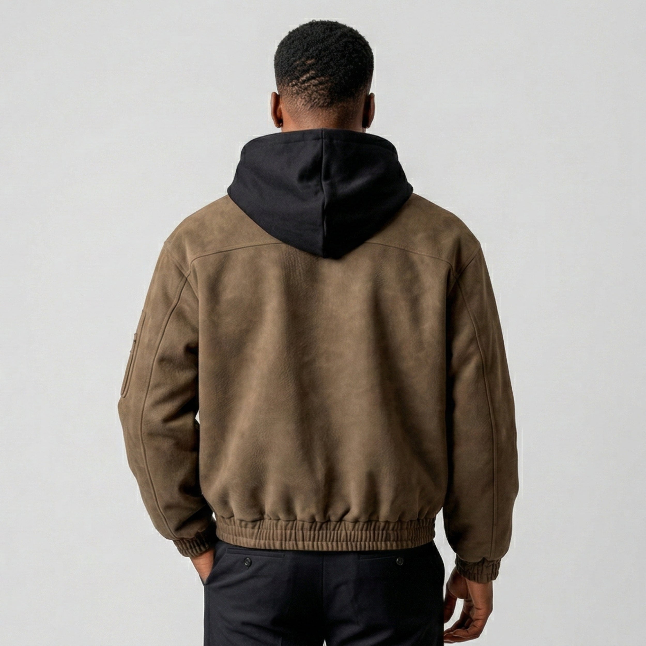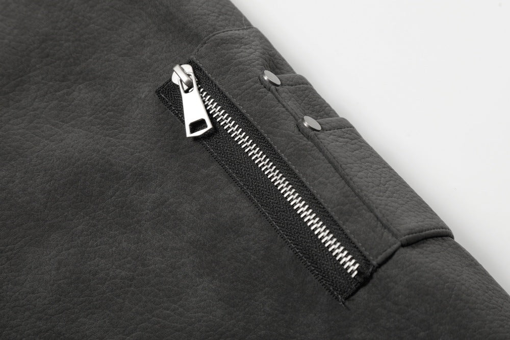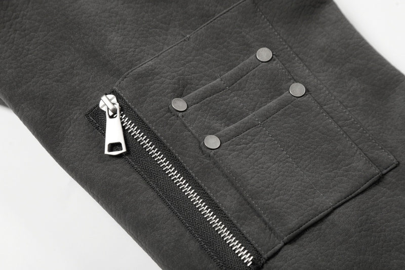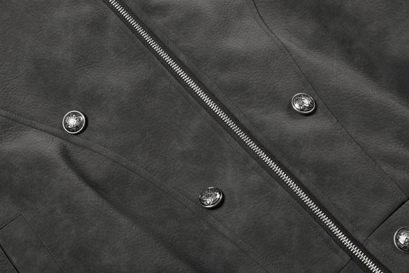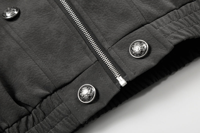 Available in Brown and Dark Gray, this jacket pairs with dark cargo trousers and heavy boots for a commanding, winter-ready street presence.