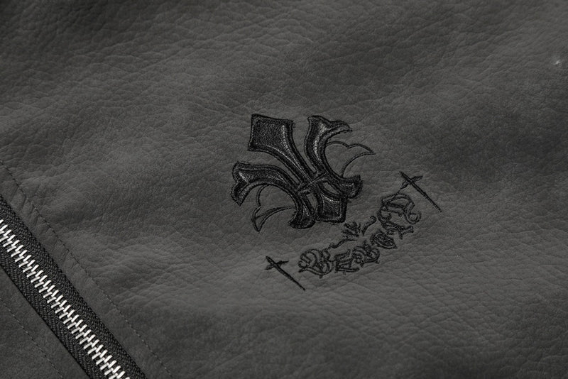 Embroidery craftsmanship adds artisanal detailing to the contemporary leather base, bringing visual depth and premium finishing touches.